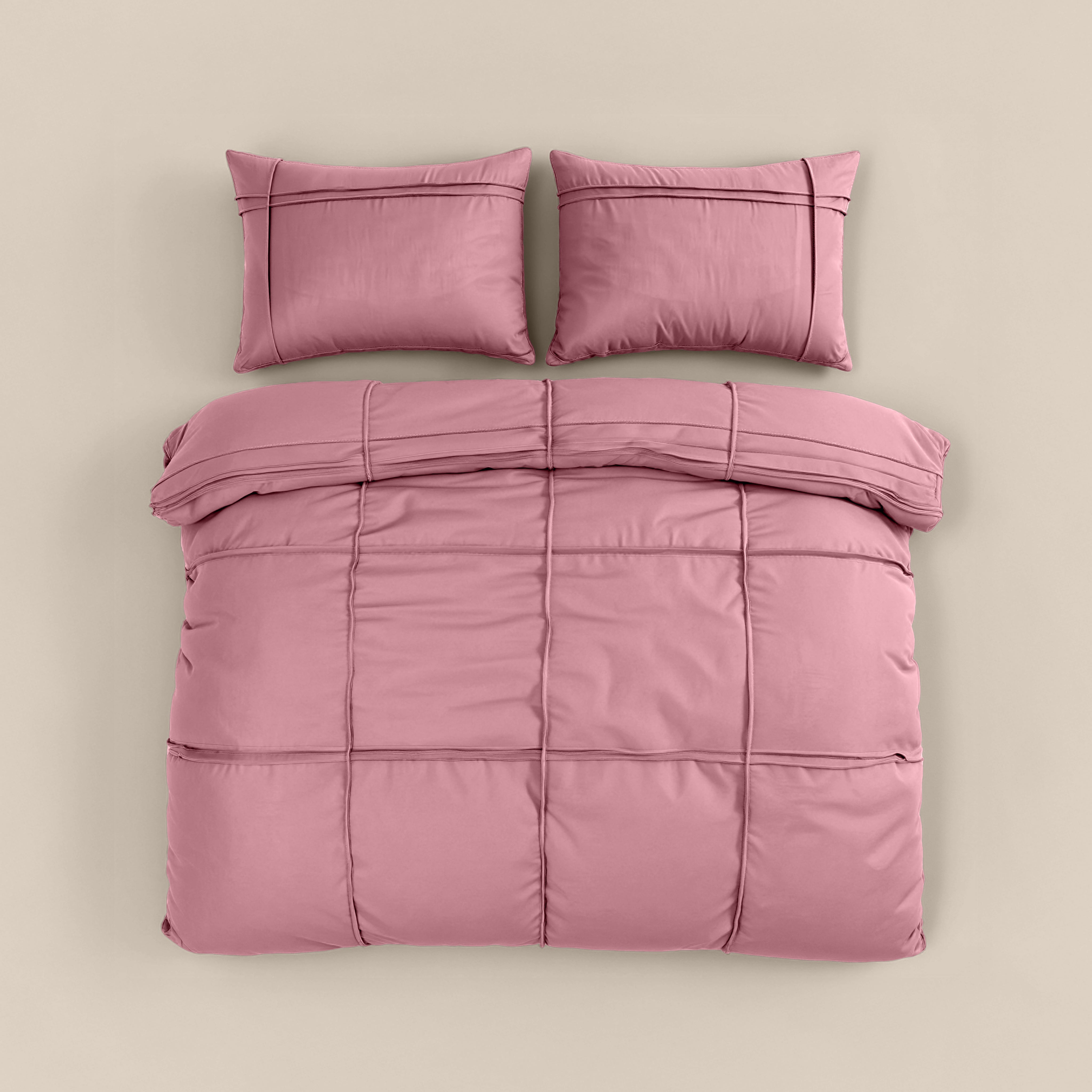 De gewassen microvezel voelt zacht en luchtig aan, terwijl de tufted pintuck-details zorgen voor een subtiel reliëf en een tijdloze uitstraling.