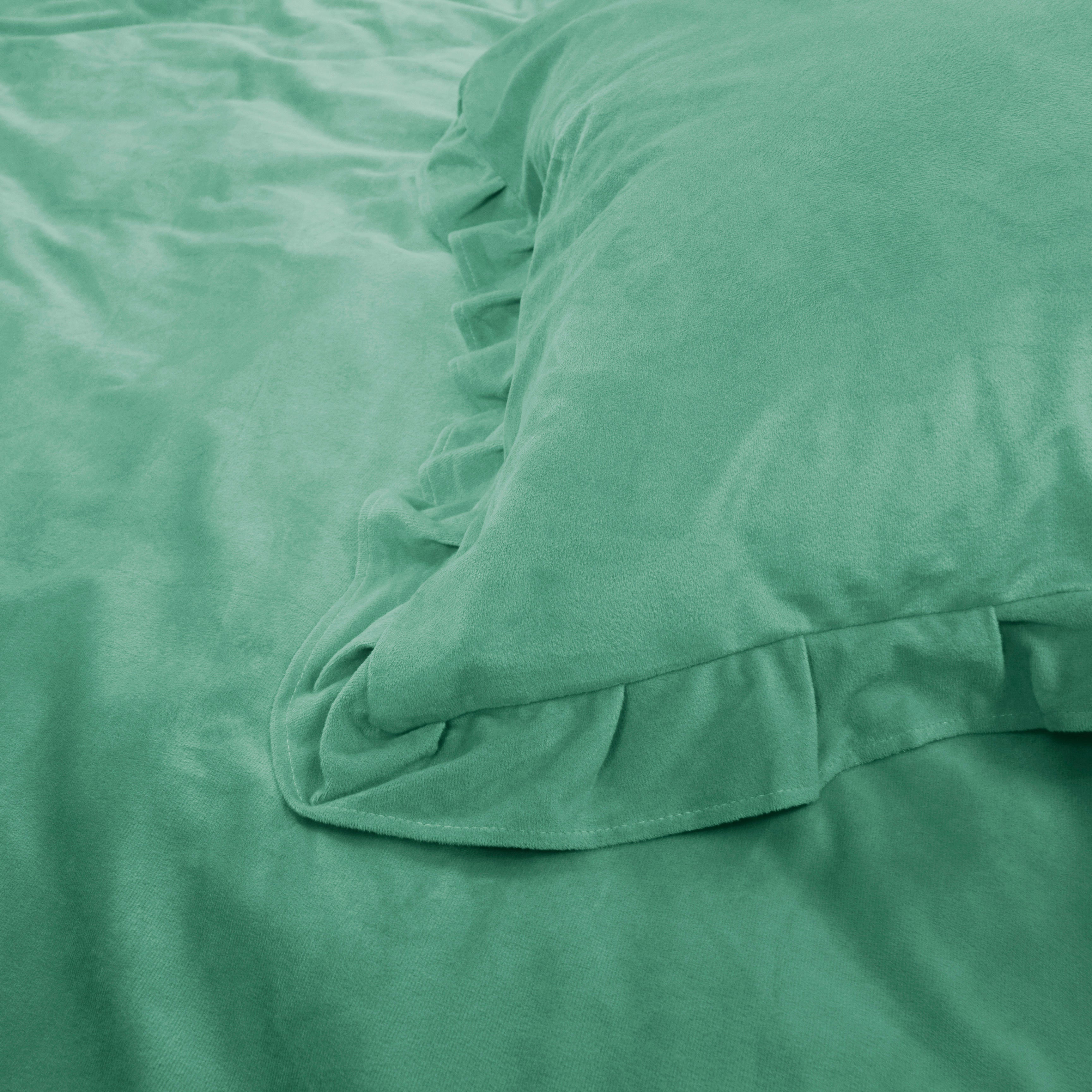 Ervaar elke nacht het gevoel van een luxe boetiekhotel met het Velvet Ruffles Groen dekbedovertrek. De rijke, groene kleur brengt rust en elegantie in je slaapkamer, terwijl het fluweelzachte materiaal uitnodigt tot ultiem comfort.