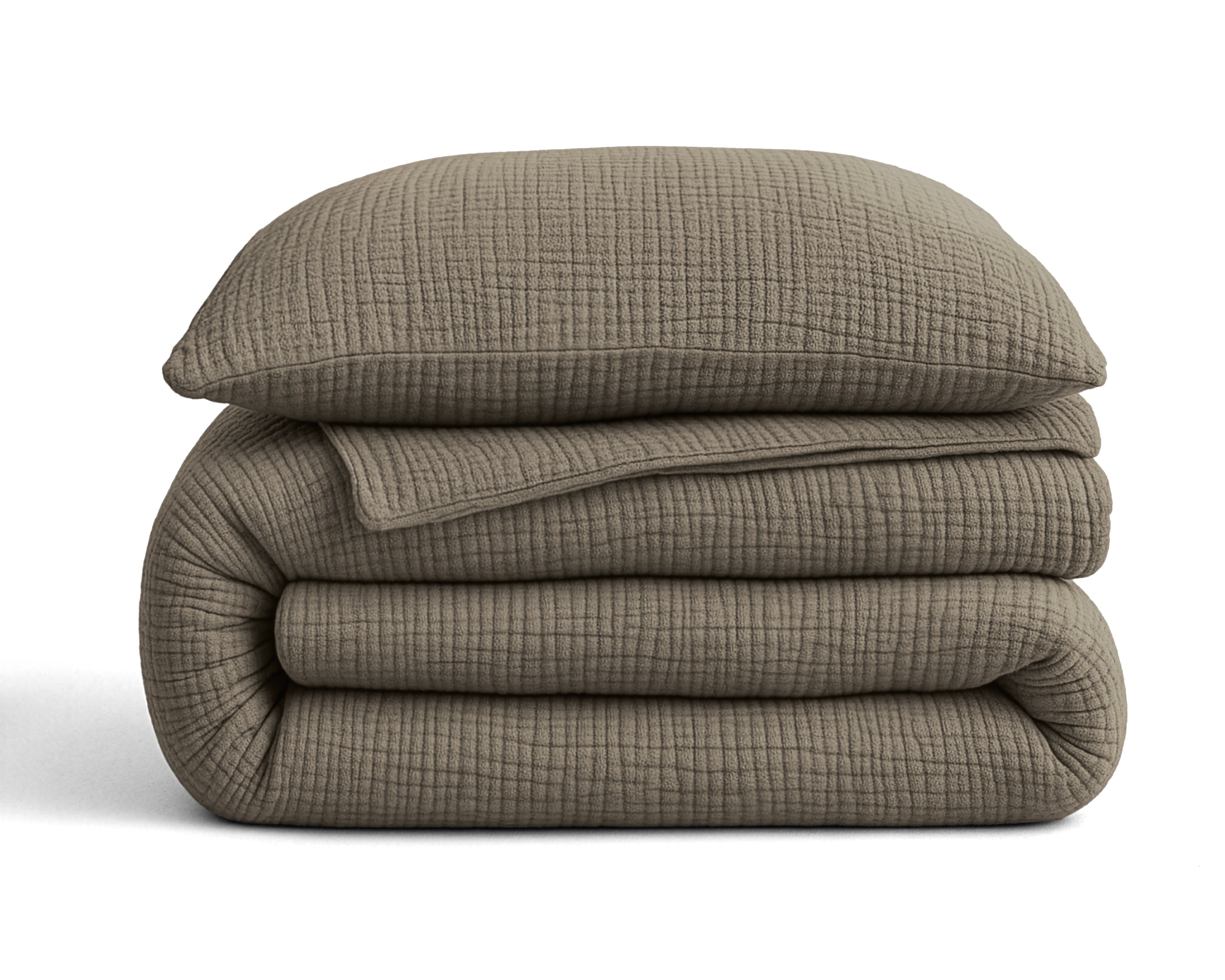 Afhankelijk van de maat ontvang je 1 of 2 mousseline kussenslopen in dezelfde taupetint.
